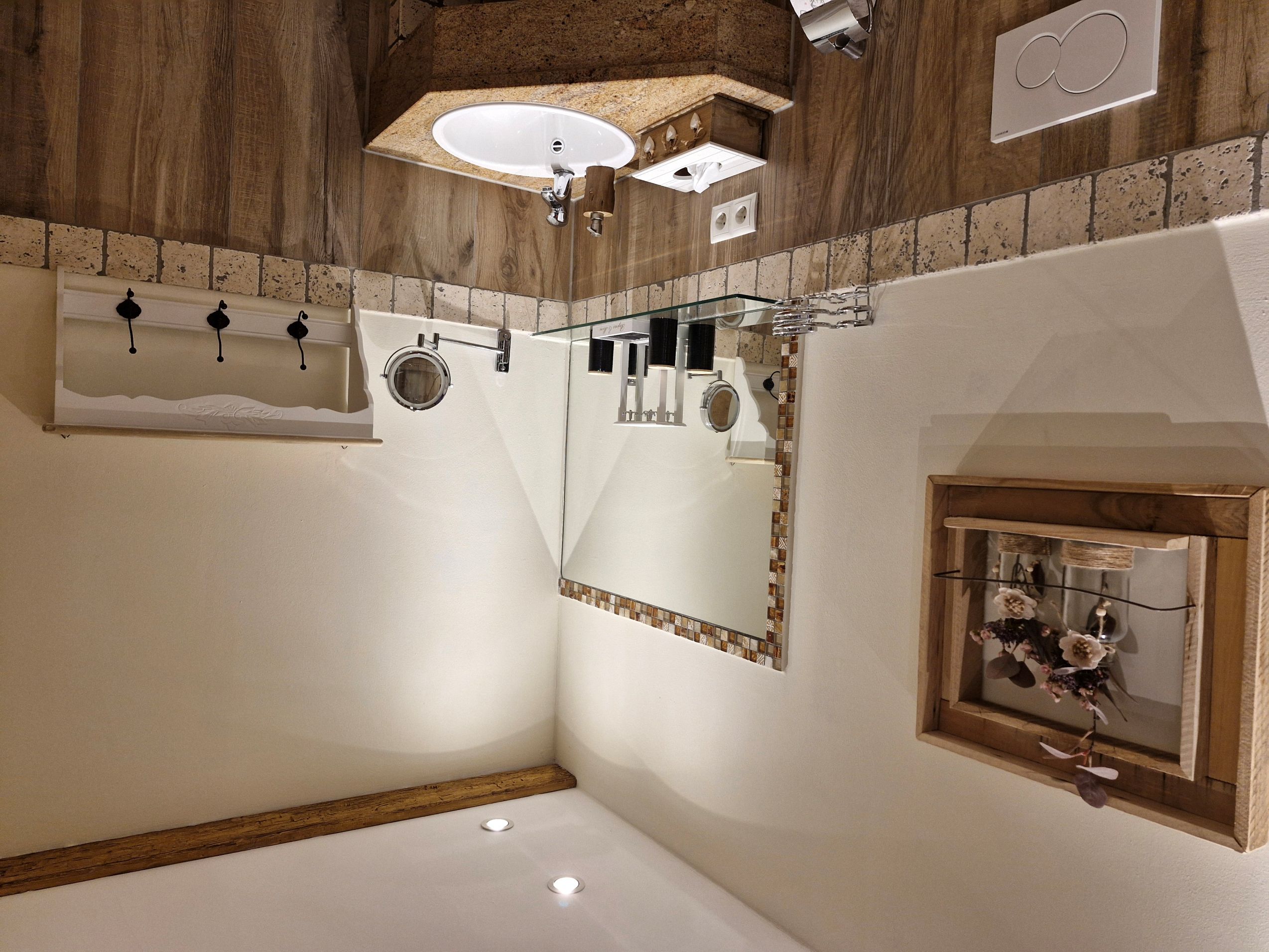 - Bad mit Regendusche, Föhn & Hygieneartikeln