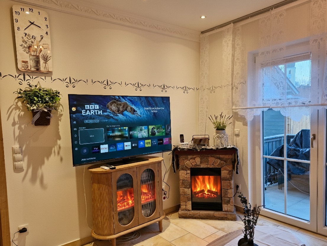 Modernes Entertainment: Ein 55-Zoll Smart-TV bietet Ihnen beste Unterhaltung für gemütliche Abende.